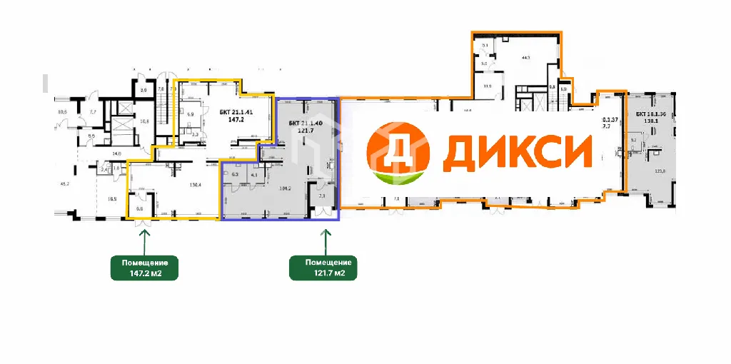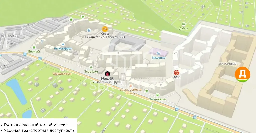 Помещение располагается на первой линии жилого комплекса, в центре жилого массива, в пешей доступности остановка общественного транспорта. Высокий автомобильный и пешеходный трафик вдоль помещения. Помещение располагается в окружений сетевых арендаторов: Дикси, ВкусВилл.