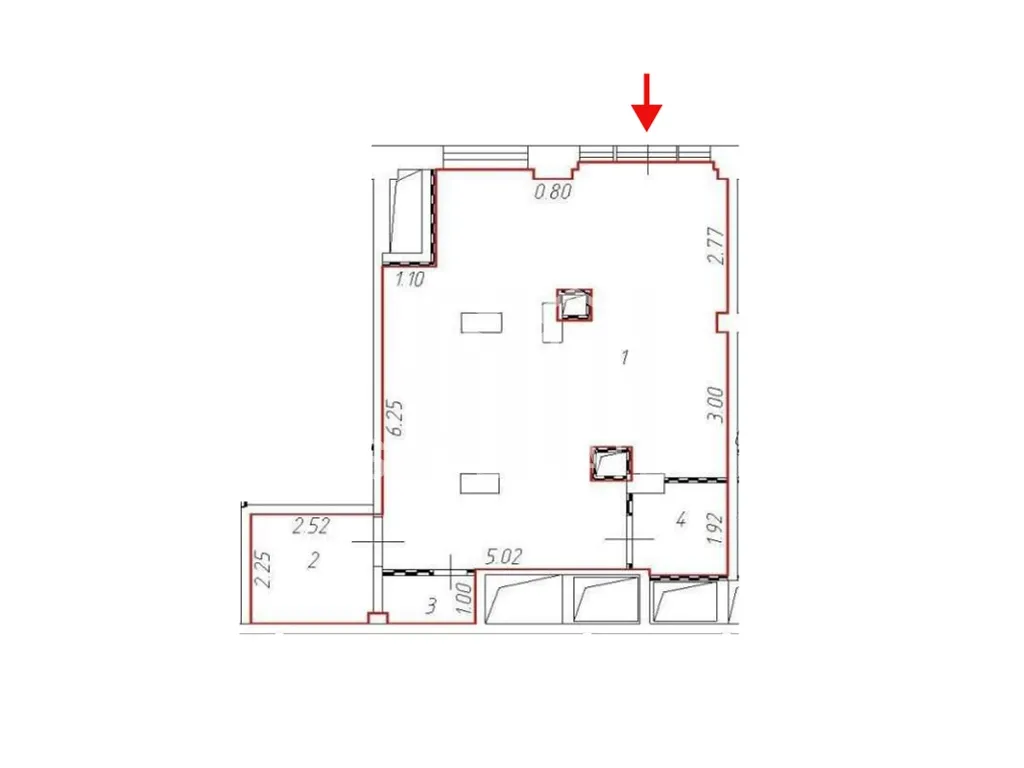 Помещение 61 м2, располагается на 1 этаже, открытая планировка, отдельный вход с фасада, высота потолка 5 м, витринные окна по фасаду. Электрическая мощность 12 кВт. Парковка перед фасадом. Место для размещения рекламы. Дом сдан в 2025 году.