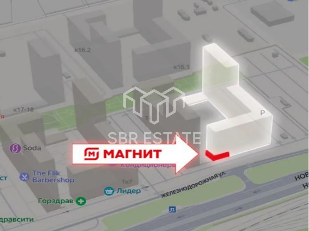 Продажа торгового помещения с арендатором «Магнит» площадью 313,7 м2 расположенного по адресу: Московская область, Котельники, микрорайон Парковый, 14 (39 минут пешком, 11 минут на транспорте от метро Котельники).