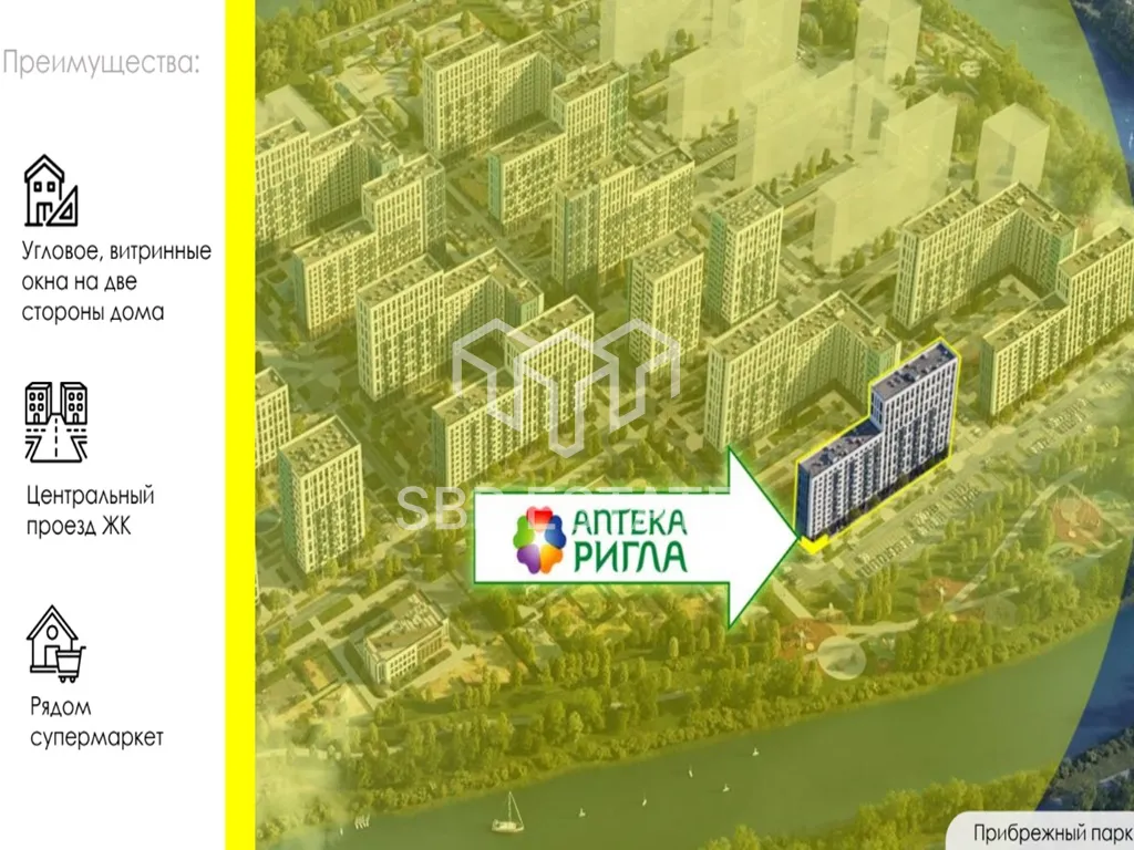 Продажа торгового помещения с арендатором «Ригла» площадью 69,5 м2 расположенного по адресу: Московская область, городской округ Домодедово, село Ям, ЖК Прибрежный Парк, 7.1 ( 33 минуты на транспорте от метро Домодедовская).