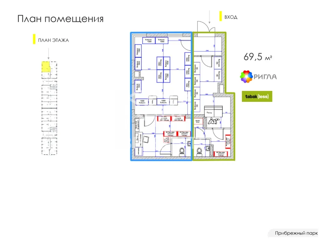 Арендаторы: «Ригла», «Tabak(Less)», общая месячная арендная плата 255 000 рублей.