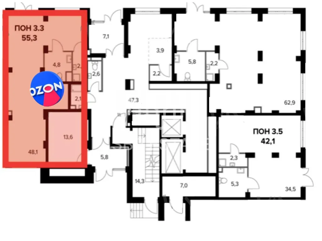 Арендатор: «Озон», месячная арендная плата 200 000 рублей. Договор аренды подписан с 2025 года по 2030 год. Безусловная ежегодная индексация 6%, с 25 месяца.