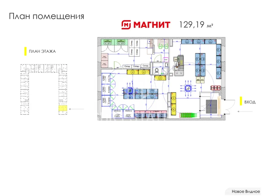 Продажа торгового помещения с арендатором «Магнит» площадью 129,19 м2 расположенного по адресу: Московская область, Ленинский городской округ, ЖК Новое Видное, 17 ( 39 минут на транспорте от метро Домодедовская).