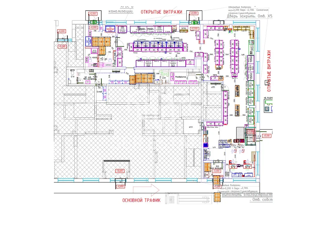 В помещении открытая планировка, 2 отдельных входа, высота потолка 4,15 м, витринные окна по фасаду. Электрическая мощность 60 кВт.