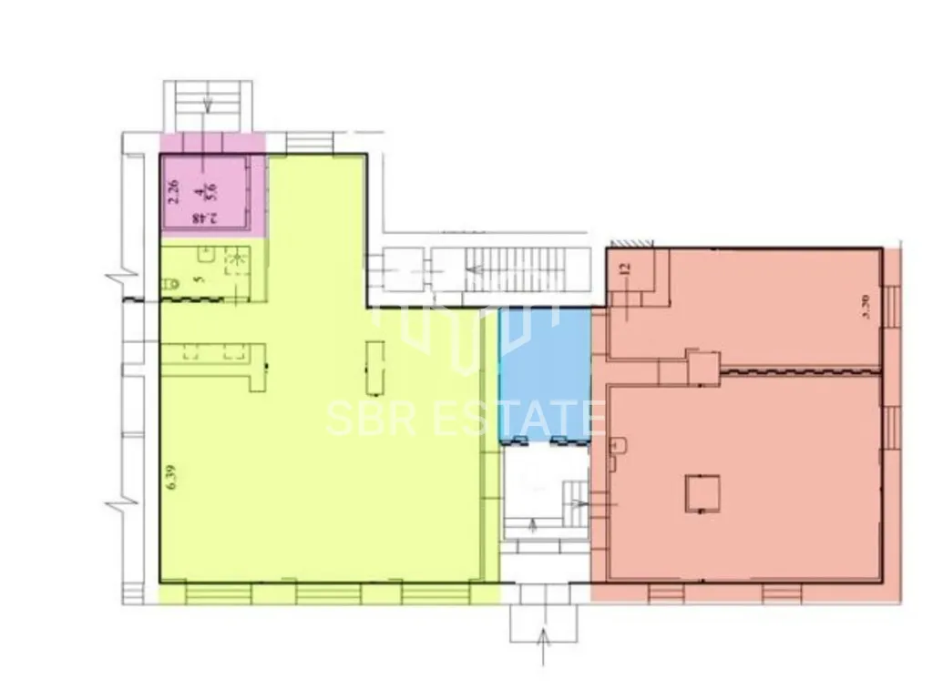 В помещении открытая планировка, отдельный вход с фасада, высота потолка 3 м, витринные окна по фасаду. Электрическая мощность 50 кВт.