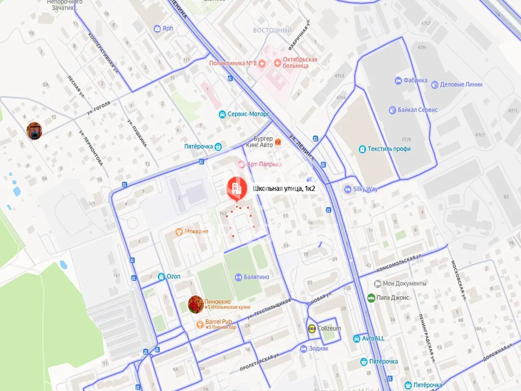 Помещение располагается на 1-м этаже первой линии жилого комплекса. В шаговой доступности от помещения, остановка общественного транспорта. Помещение находится в окружении сетевых арендаторов. Интенсивный автомобильный и пешеходный трафик вдоль помещения. Есть место для размещения рекламы. Парковка перед фасадом.