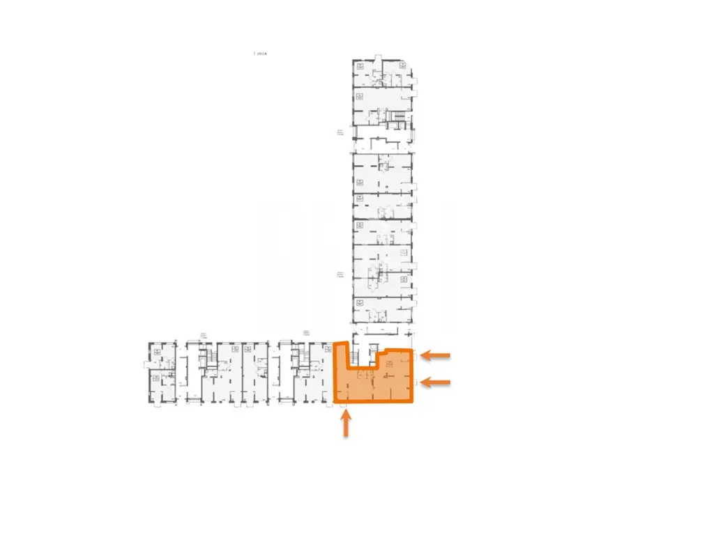 Помещение располагается на 1-м этаже первой линии жилого комплекса. В шаговой доступности от помещения, остановка общественного транспорта. Помещение находится в окружении сетевых арендаторов. Интенсивный автомобильный и пешеходный трафик вдоль помещения. Есть место для размещения рекламы. Парковка перед фасадом.