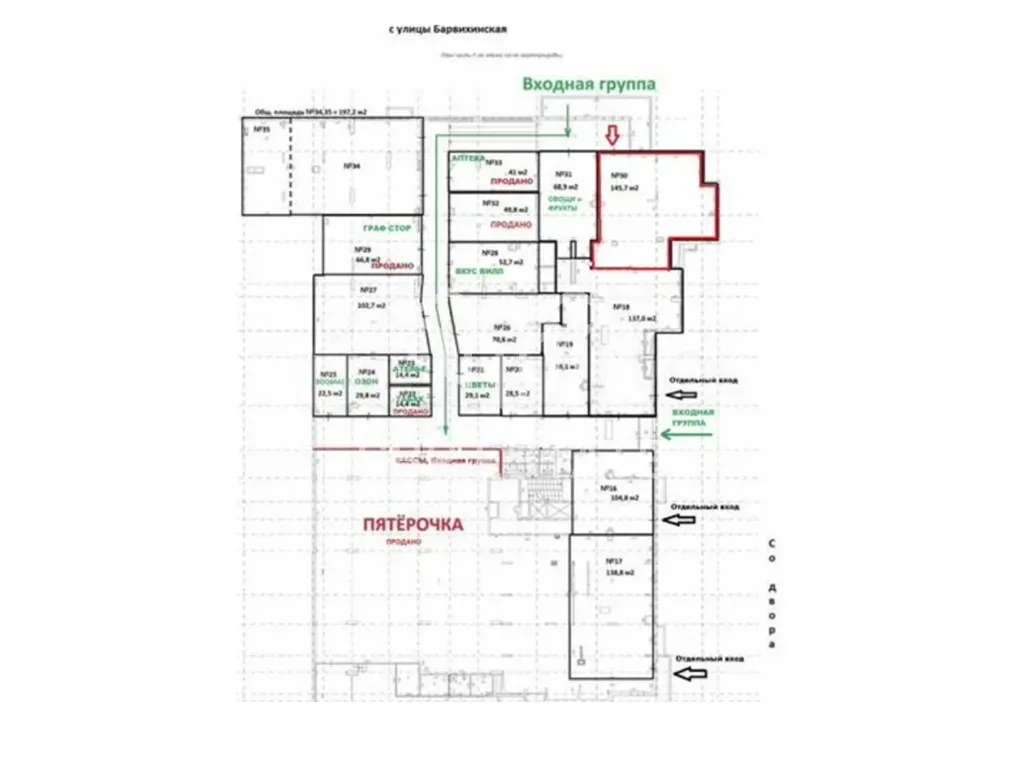 Продажа торгового помещения площадью 145,7 м2, расположенного по адресу: Москва, Барвихинская улица, 6 (15 минут пешком, 5 минут на транспорте от станции МЦД-1 «Сетунь»).