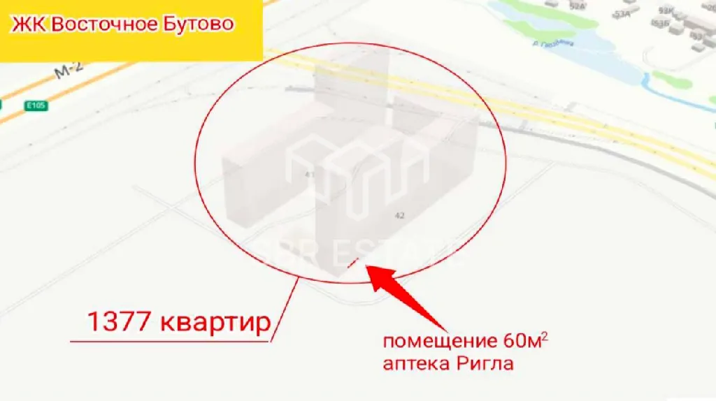 Продажа коммерческого помещения площадью 60 м2 с аптекой Ригла по адресу: Московская Область, Ленинский район, с/п Булатниковское, д. Боброво, мкр. «Боброво», корпус 42 (19 минут транспортом от метро улица Скобелевская). 1 линия домов.