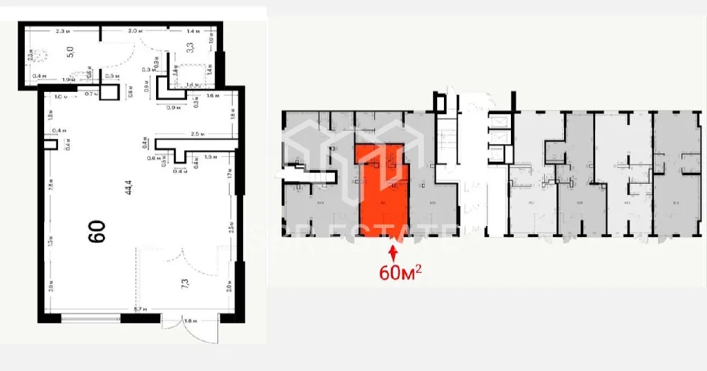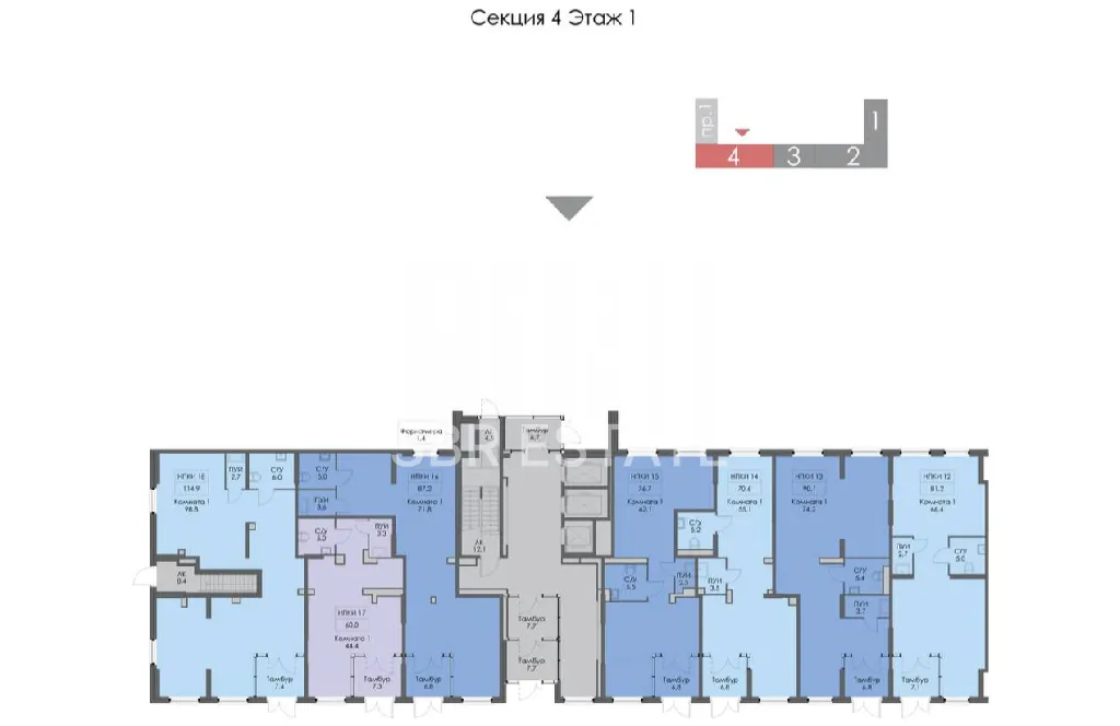 Помещение площадью 60 м2, располагается на 1 этаже, открытая планировка, отдельный вход с фасада, высота потолка 3 м, витринные окна по фасаду. Парковка перед фасадом. Место для размещения рекламы. Ввод в эксплуатацию: III квартал 2025 г. Ключи: ноябрь 2025 г.
