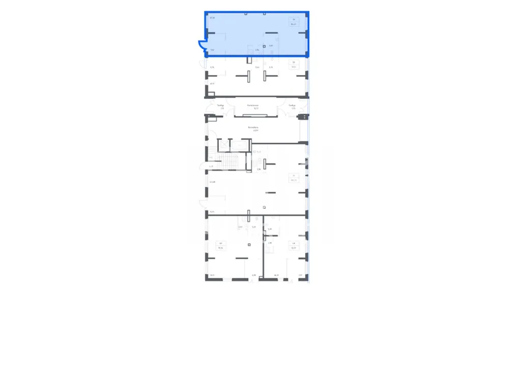 В помещении открытая планировка, отдельный вход с фасада, высота потолка 4 м, витринные окна по фасаду. Электрическая мощность 15 кВт.