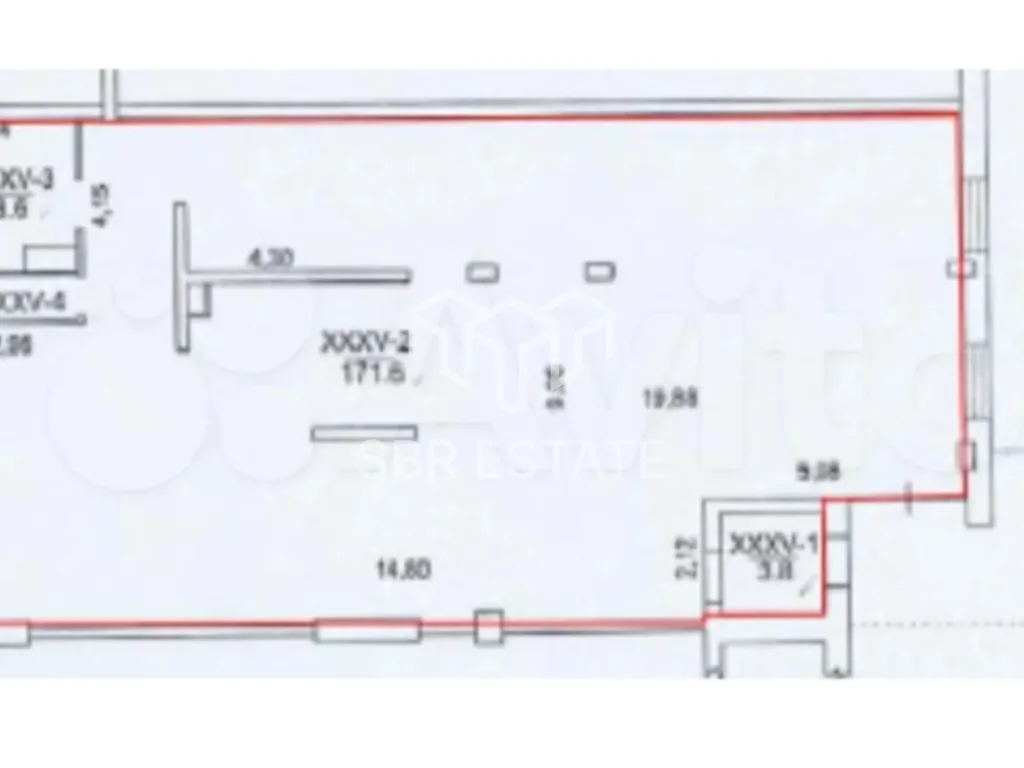 В помещении открытая планировка, отдельный вход с фасада, высота потолка 3,5 м, витринные окна по фасаду. Электрическая мощность 50 кВт.