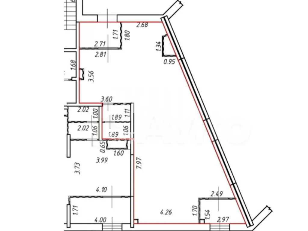 В помещении открытая планировка, отдельный вход с фасада, высота потолка 3 м, витринные окна по фасаду. Электрическая мощность 20 кВт.