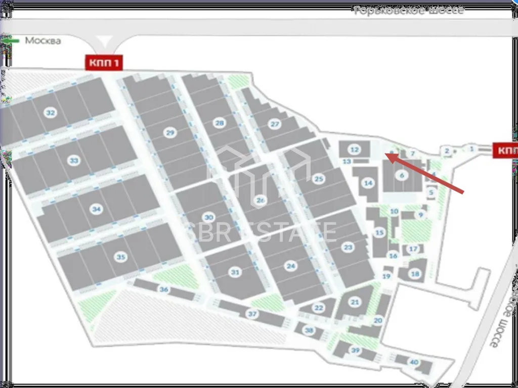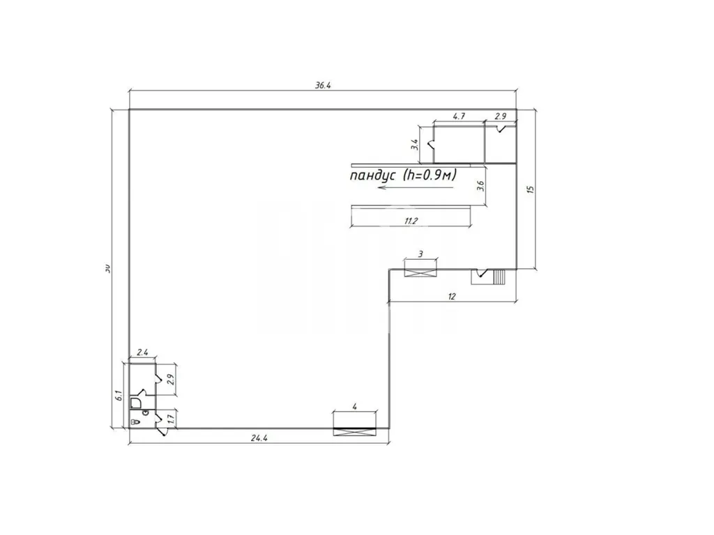 Рабочая высота - 12 м. Площадь пола – 903,5 м². Сетка колонн в складской части - 12×24 м, Количество «нулевых» ворот -1 шт. Количество доков - 1 шт.