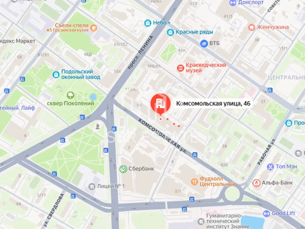 Аренда торгового помещения площадью 461 м2 расположенного по адресу: Московская область, Подольск, Комсомольская улица, 46 (14 минут пешком 5 минут на транспорте от метро Подольск).