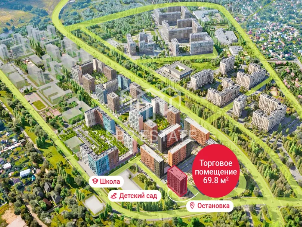 Помещение располагается на 1-м этаже первой линии жилого комплекса. В шаговой доступности от помещения, остановка общественного транспорта. Помещение находится в окружении сетевых арендаторов. Интенсивный автомобильный и пешеходный трафик вдоль помещения. Есть место для размещения рекламы. Парковка перед фасадом.