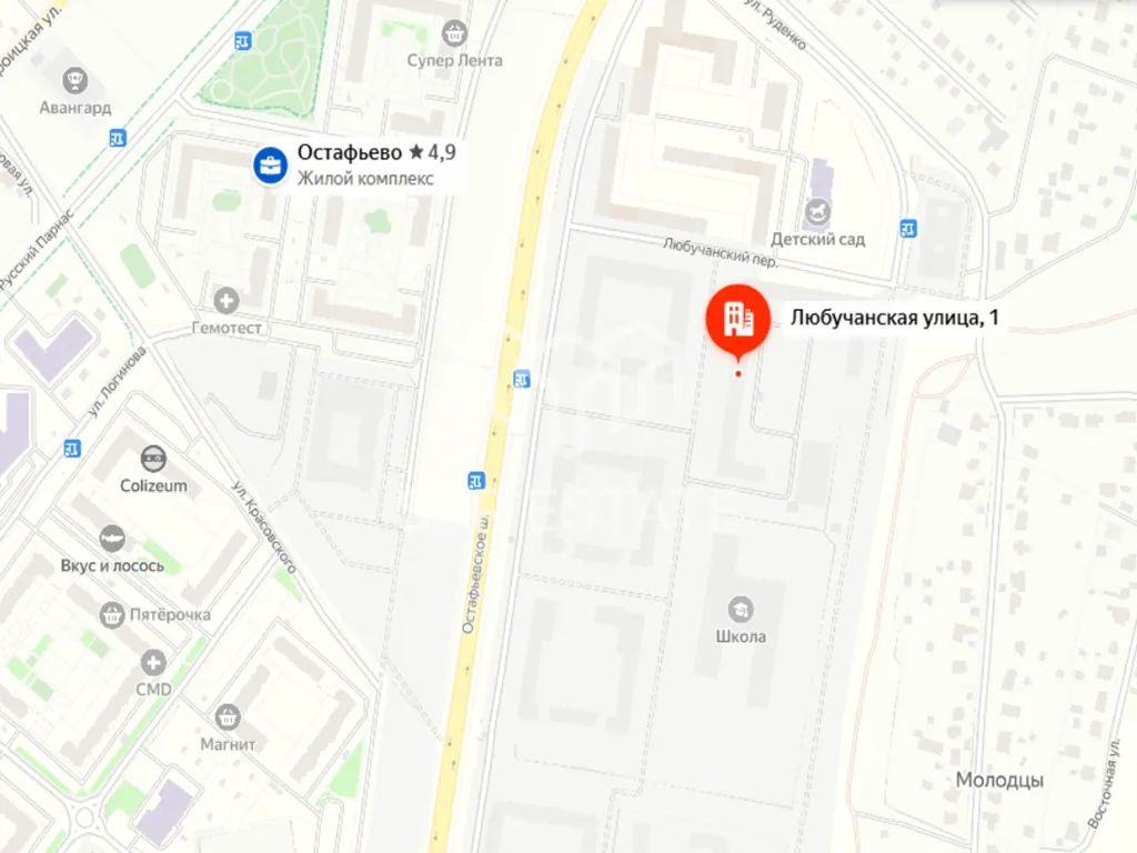 Аренда коммерческого помещения 116,3 м2 по адресу: Новая Москва, ул. Любучанская, д. 1 в ЖК Остафьево (11 минут транспортом от станции МЦД D2 Остафьево). 1-я линия домов.