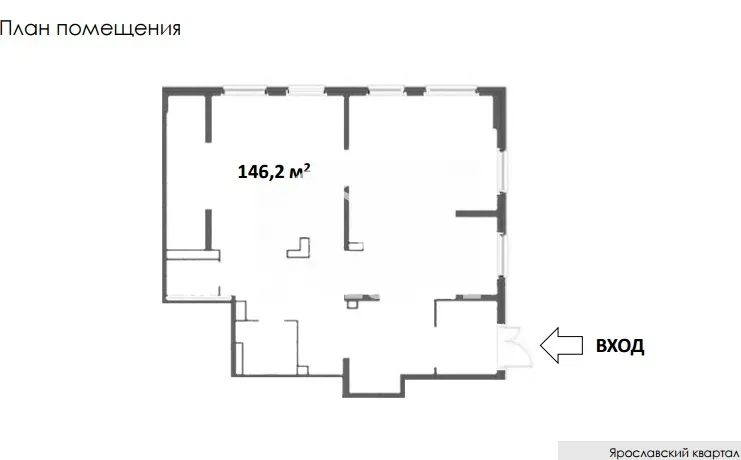 Помещение площадью 146,2 м2, располагается на 1 этаже, угловое помещение, открытая планировка, отдельный вход с фасада, высота потолка 3,5 м, витринные окна по фасаду. Электрическая мощность 35 кВт. Парковка перед фасадом. Место для размещения рекламы. Ввод в эксплуатацию 3кв. 2025г. Ключи 30.11.2025г.