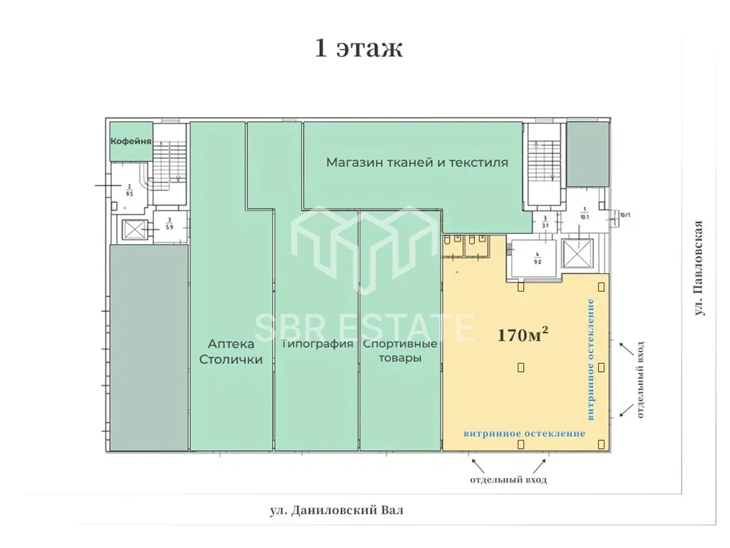 Аренда торгового помещения площадью 170 м2 расположенного по адресу: Москва, Павловская улица, 18с2 (5 минут пешком от метро Тульская).