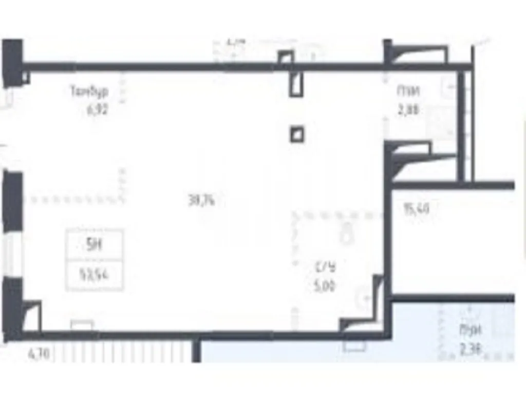 Помещение 53,5 м2, располагается на 1 этаже, открытая планировка, отдельный вход с фасада, высота потолка 3 м, витринные окна по фасаду. Электрическая мощность 10 кВт. Парковка перед фасадом. Место для размещения рекламы. Ключи получены в 3 кв. 2025 года.