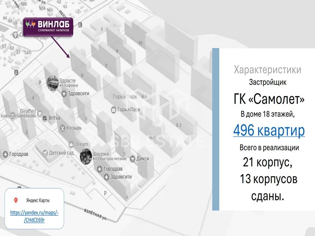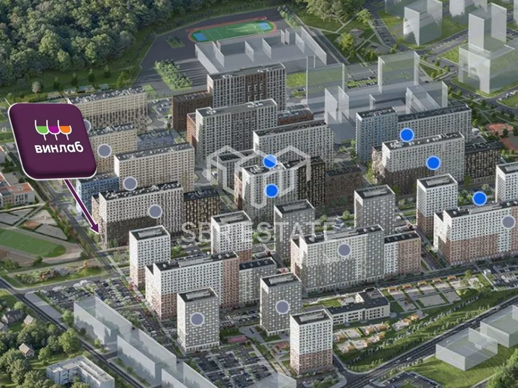 Продажа коммерческого помещения с арендатором «Винлаб» площадью 109,3 м2 расположенного по адресу: Московская область, Ленинский городской округ, деревня Коробово, улица Авиаторов, 6 в ЖК «Горки Парк» (28 минут на транспорте от метро Домодедовская).
