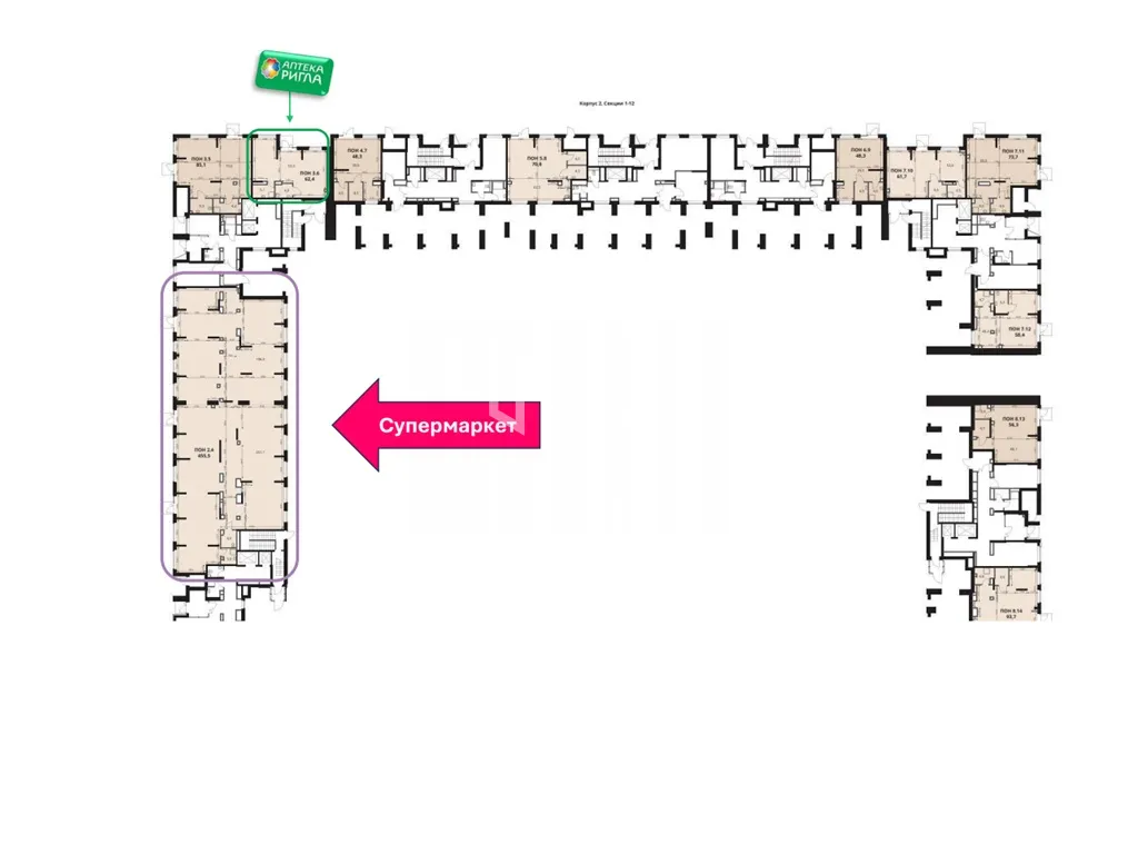 Продажа готового арендного бизнеса с арендатором аптека «Ригла» площадью 62,4 м2 расположенного по адресу: Москва, Новомосковский административный округ, район Коммунарка, жилой комплекс 1-й Ясеневский, 2 (9 минут на транспорте от метро Корниловская).
