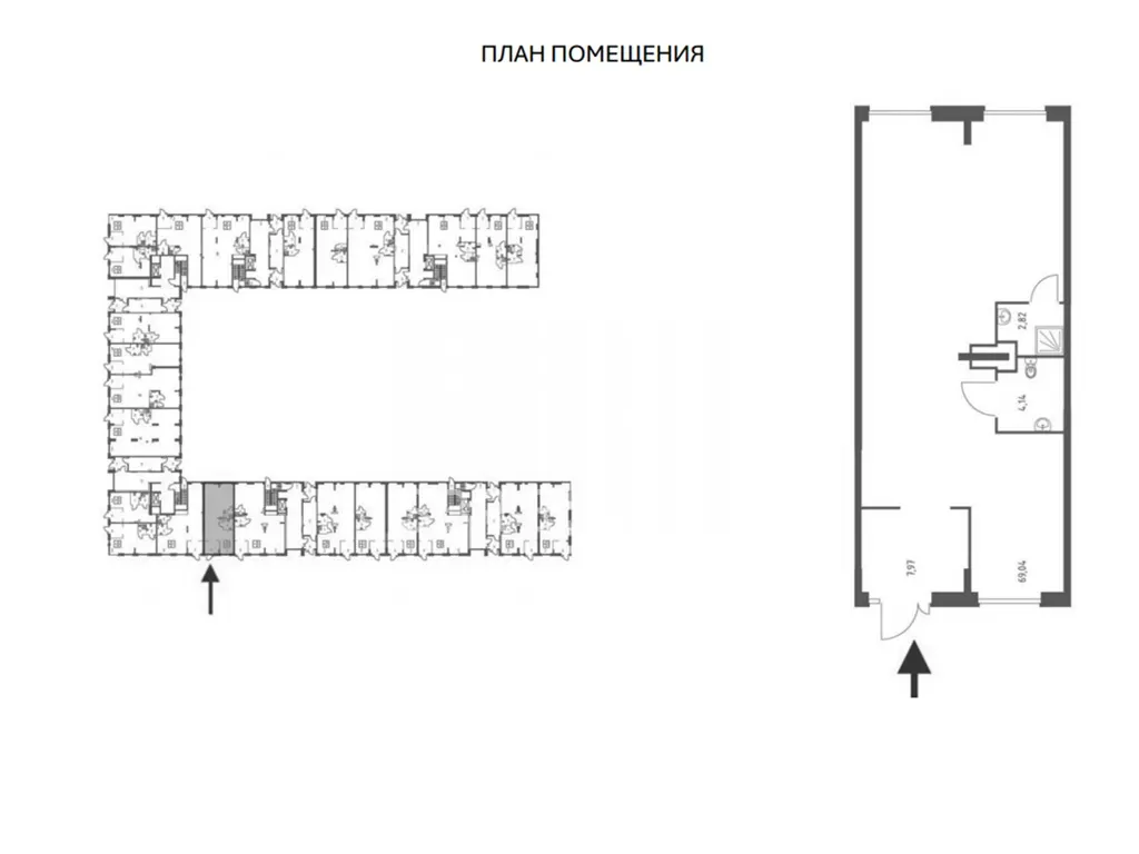 В помещении открытая планировка, отдельный вход с фасада, высота потолка 4 м, витринные окна по фасаду. Электрическая мощность 15 кВт.