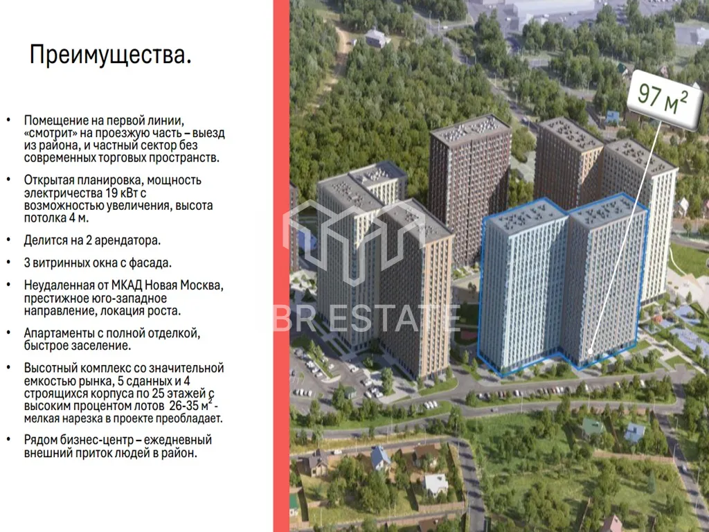 Продажа торгового помещения площадью 97 м2 расположенного по адресу: Москва, Новомосковский административный округ, район Коммунарка, многофункциональный комплекс Тропарево Парк, к2.3 (15 минут пешком, 8 минут на транспорте от метро Румянцево).