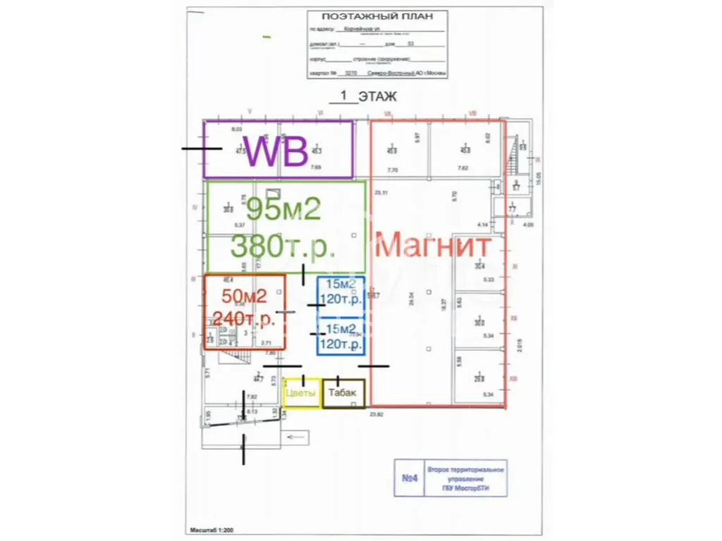 Аренда торгового помещения площадью 95 м2 расположенного по адресу: Москва, улица Корнейчука, 53 (20 минут пешком 5 минут на транспорте от метро Бибирево).