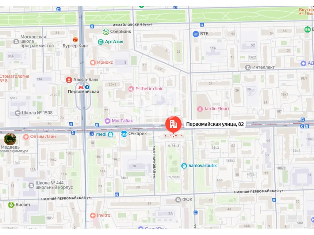 Аренда торгового помещения площадью 103 м2 расположенного по адресу: Москва, Первомайская улица, 82 (5 минут пешком 2 минут на транспорте от метро Выбрать станцию метро).