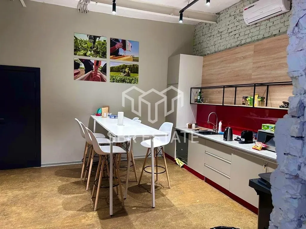 Офисное помещение располагается на 1-м этаже, смешанная планировка, высота потолков 3,5 м. Электрическая мощность 6 кВт.