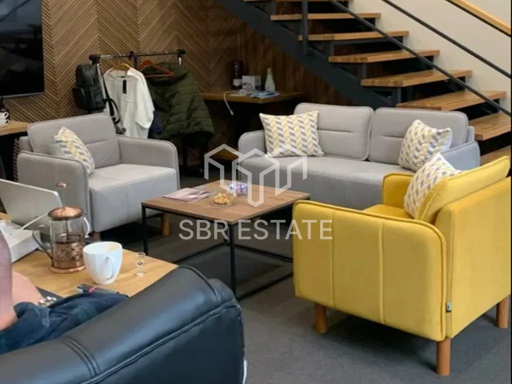 Офисное помещение располагается на 1-м этаже, смешанная планировка, высота потолков 3,5 м. Электрическая мощность 6 кВт.