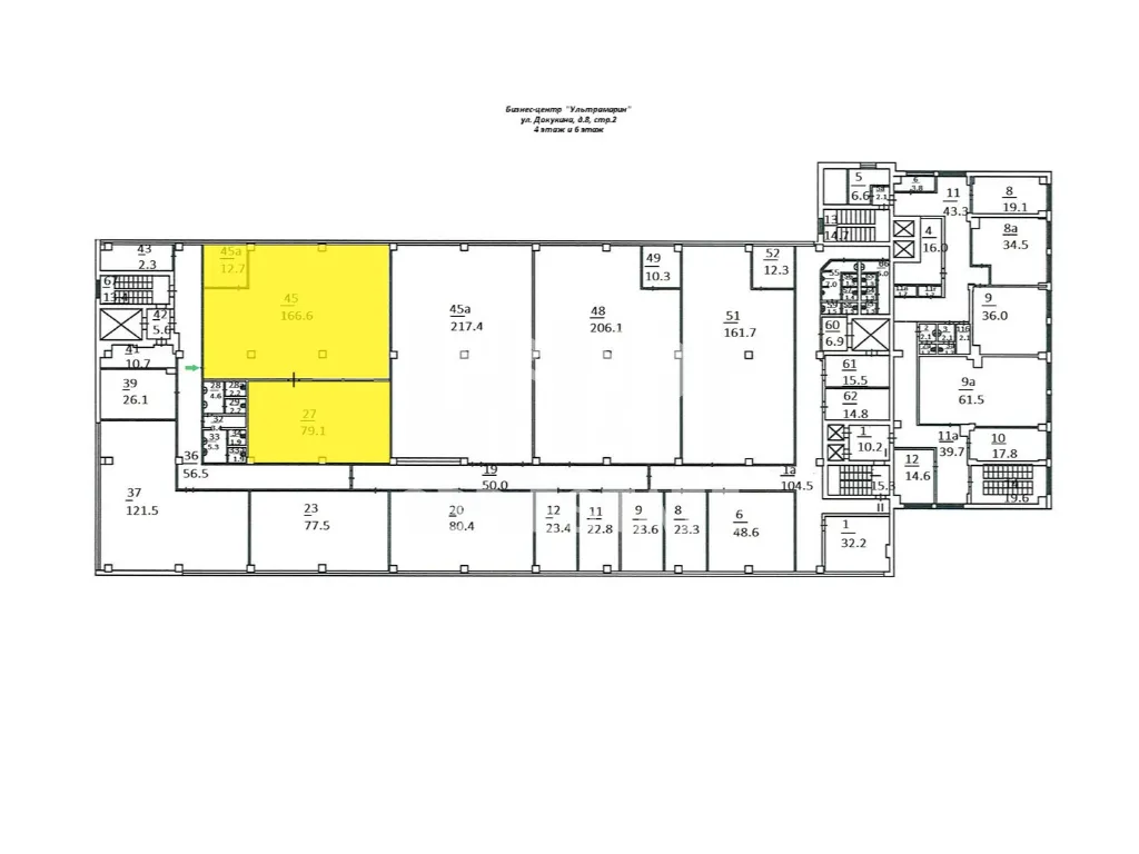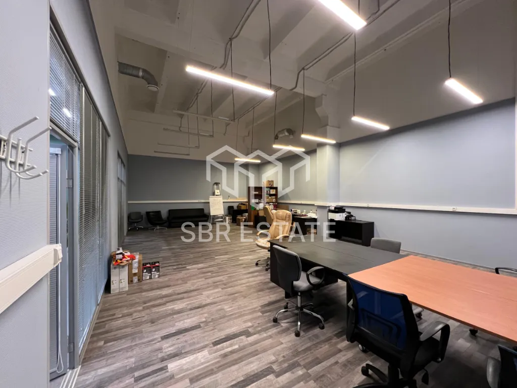 Офисное помещение, располагается на 4 этаже, В помещении кабинетная планировка, 3 кабинета. Помещение с окнами (166.1 кв. м + 79.1 кв. м + 12.7 кв. м – металлический каркас со стеклом) выполнено в формате open-space. высота потолка 5 м. Парковка перед фасадом.