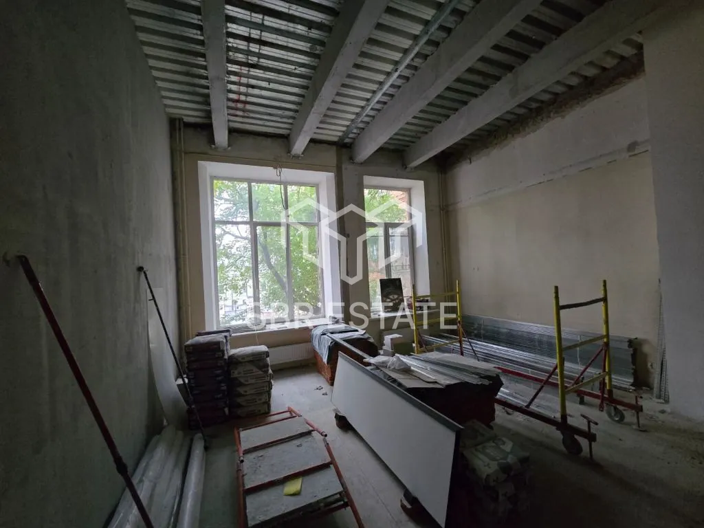 Офисное помещение располагается на 2-м этаже, открытая планировка, высота потолков 5 м. Электрическая мощность 20 кВт.