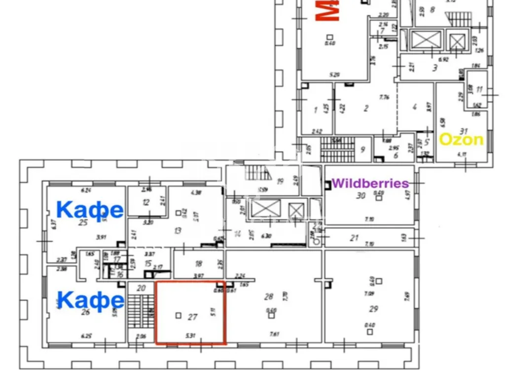 В помещении открытая планировка, отдельный вход с фасада, высота потолка 5 м, витринные окна по фасаду. Электрическая мощность 11 кВт.