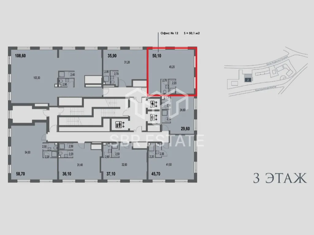 Офисное помещение располагается на 3-м этаже, открытая планировка, высота потолков 3,3 м. Электрическая мощность 10 кВт. Ввод в эксплуатацию в 4 кв. 2025 году