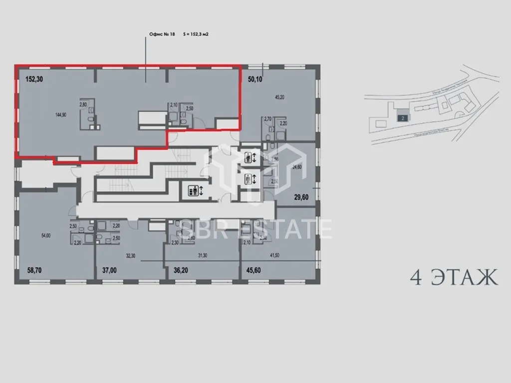 Офисное помещение располагается на 4-м этаже, открытая планировка, высота потолков 3,32 м. Электрическая мощность 30 кВт. Ввод в эксплуатацию в 4 кв. 2025 года.
