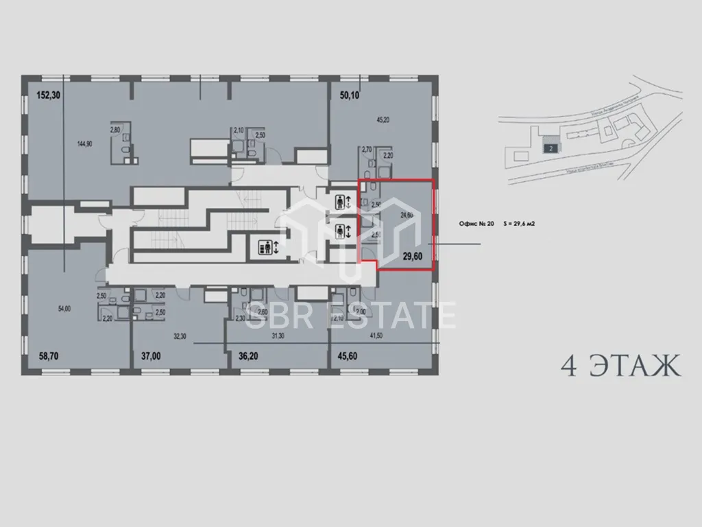 Офисное помещение располагается на 4-м этаже, открытая планировка, высота потолков 3,32 м. Электрическая мощность 30 кВт. Ввод в эксплуатацию в 4 кв. 2025 года.