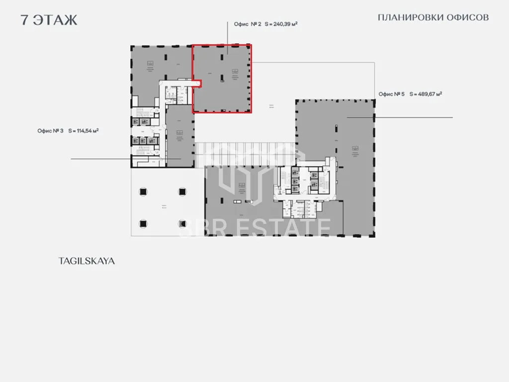 Офисное помещение располагается на 7-м этаже, открытая планировка, высота потолков 3,5 м. Электрическая мощность 43 кВт. Ввод в эксплуатацию 3 кв. 2026 года