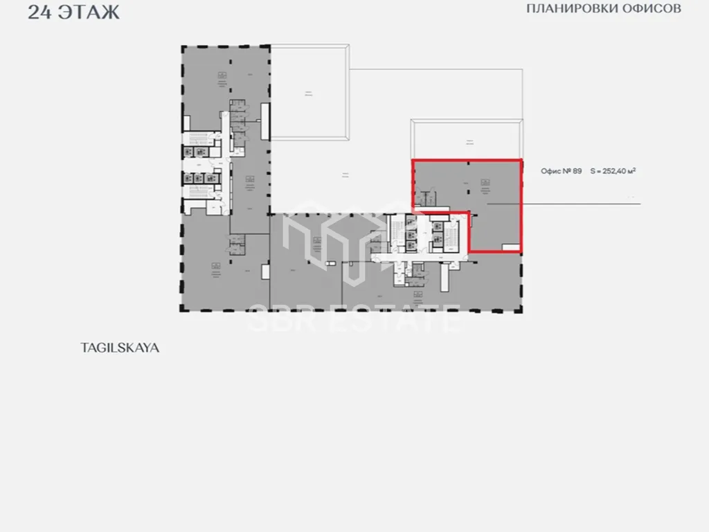 Офисное помещение располагается на 24-м этаже, открытая планировка, высота потолков 3,5 м. Электрическая мощность 45 кВт.