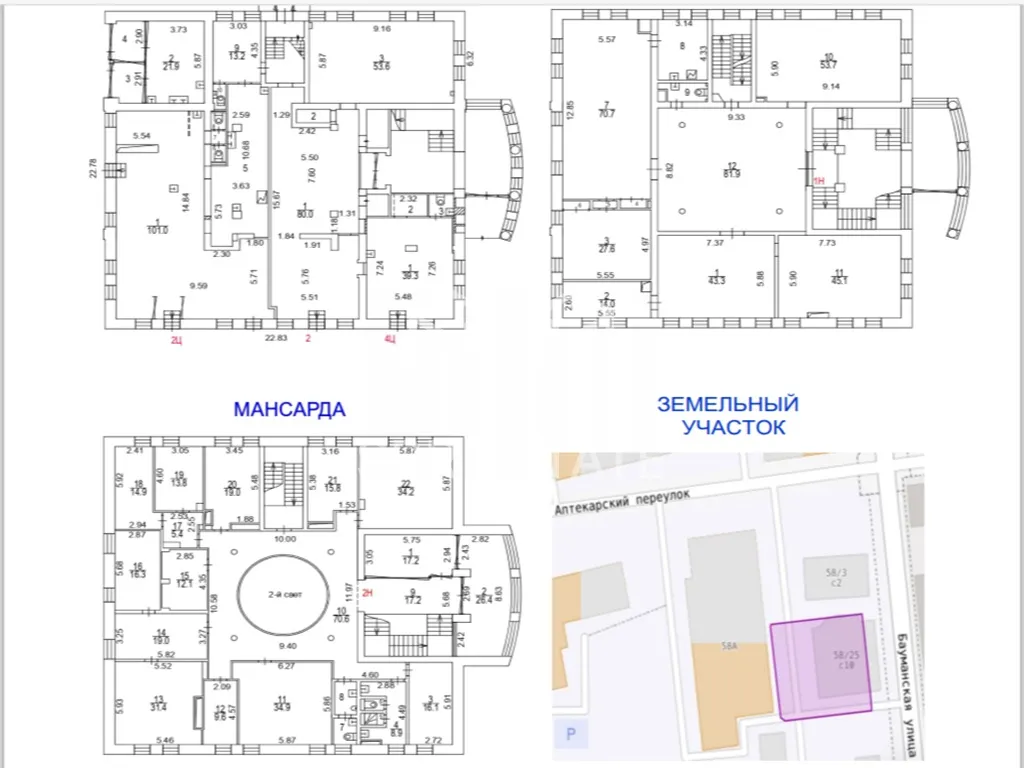 Предлагается к покупке единым лотом готовый арендный бизнес – семь нежилых помещений общей площадью 1235,0 кв. м, расположенные в пределах нежилого отдельно стоящего здания и в совокупности образующие всё здание (особняк) на собственном земельном участке площадью 1169 кв. м, по адресу: г.Москва, ЦАО, Басманный район, ул. Бауманская, д. 58/25, стр. 1.