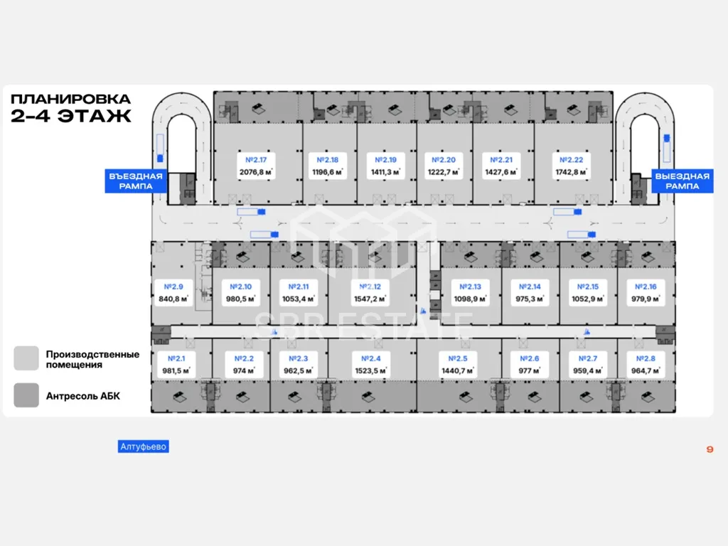 Помещение располагается на 2 этаже, открытая планировка, высота потолков 7 м, нагрузка на пол - 1,5 т. Электрическая мощность - 151 кВт. Ввод в эксплуатацию декабрь 2026 года.