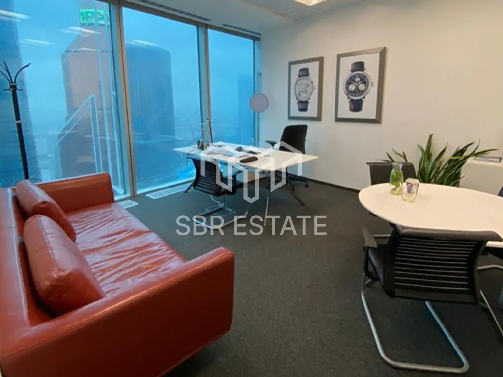 Офисное помещение, располагается на 44 этаже. В помещении смешанная планировка, высота потолка 3 м. Парковка перед фасадом.