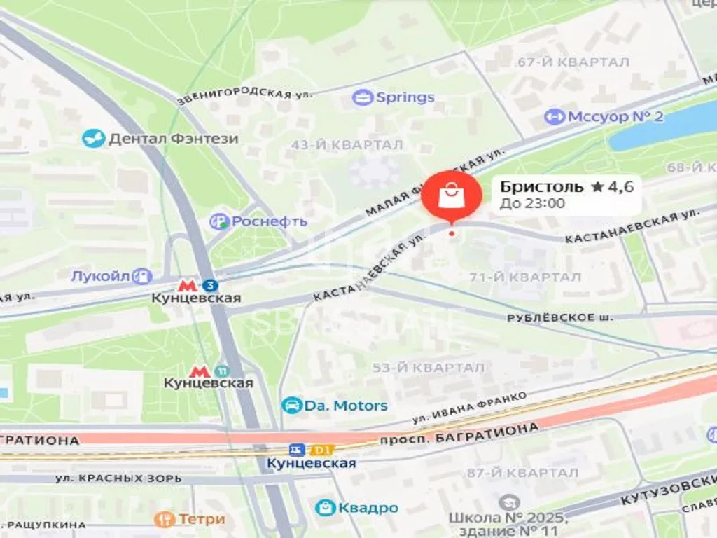 Продажа торгового помещения с арендатором «Бристоль» площадью 130.4 м2 расположенного по адресу: Москва, Кастанаевская улица, 63к2 (5 минут пешком минут от метро Кунцевская).
