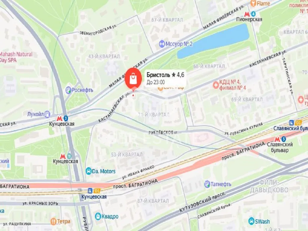 Продажа торгового помещения с арендатором «Бристоль» площадью 130.4 м2 расположенного по адресу: Москва, Кастанаевская улица, 63к2 (5 минут пешком минут от метро Кунцевская).