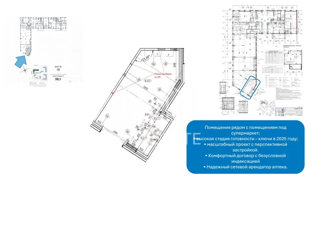 Помещение располагается на 1-м этаже первой линии жилого комплекса. В шаговой доступности от помещения, остановка общественного транспорта. Помещение находится в окружении сетевых арендаторов. Интенсивный автомобильный и пешеходный трафик вдоль помещения. Есть место для размещения рекламы. Парковка перед фасадом. Ключи до конца 2025 года.