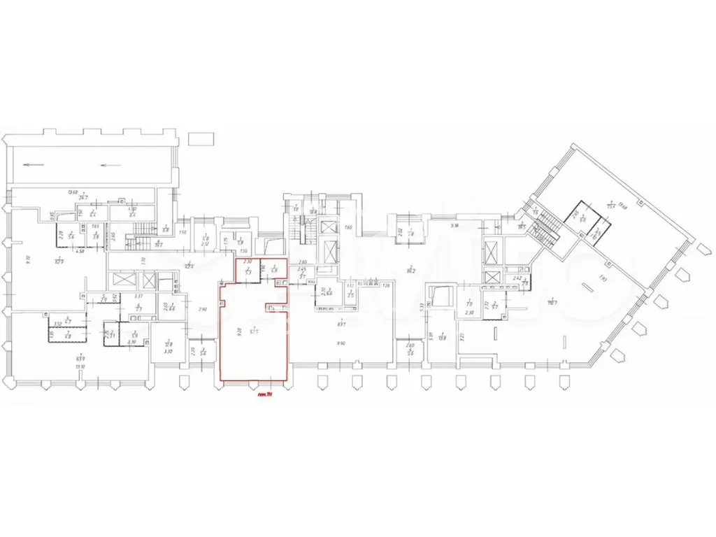 В помещении открытая планировка, отдельный вход с фасада, высота потолка 6,5 м, витринные окна по фасаду. Электрическая мощность 15 кВт.