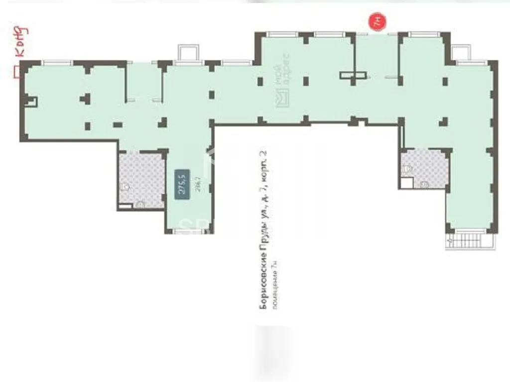 В помещении открытая планировка, отдельный вход с фасада, высота потолка 4 м, витринные окна по фасаду. Электрическая мощность 72 кВт.