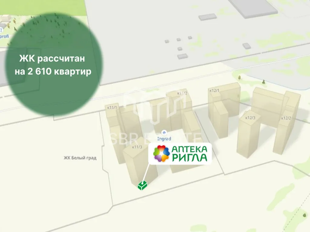 Продажа торгового помещения с арендатором аптека «Ригла» площадью 53,8 м2 расположенного по адресу: Московская область, Мытищи, жилой комплекс Белый Grad, к11.3 ( 20 минут на транспорте от метро Медведково).