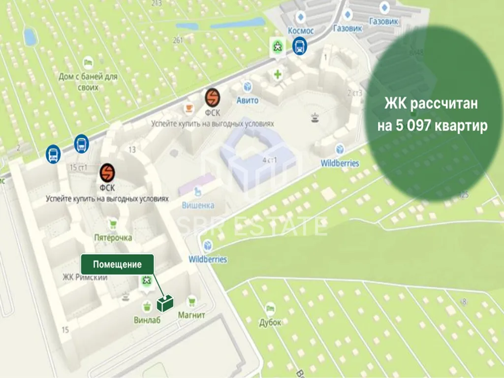 Помещение располагается на первой линии жилого комплекса, в центре жилого массива, в пешей доступности остановка общественного транспорта. Высокий автомобильный и пешеходный трафик вдоль помещения. Помещение располагается в окружений сетевых арендаторов: Магнит, Винлаб.
